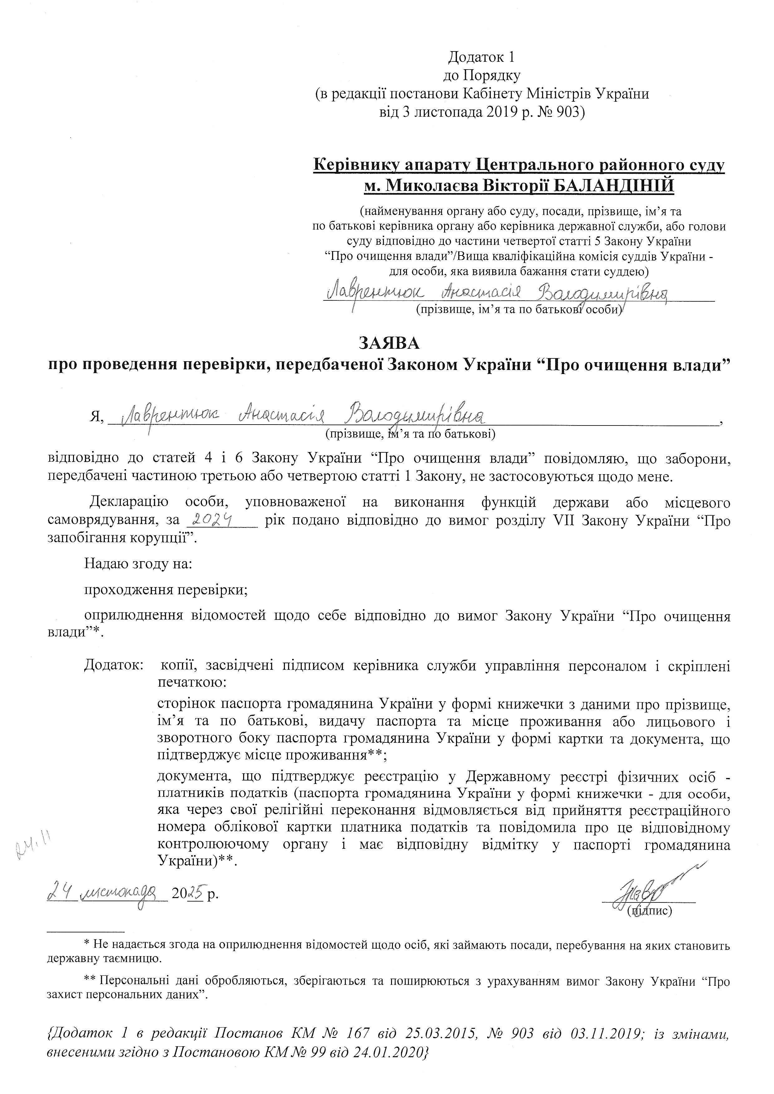 | 52 | ЛАВРЕНТЮК Анастасія Володимирівна | 24.11.2025 | Заява | Декларація |